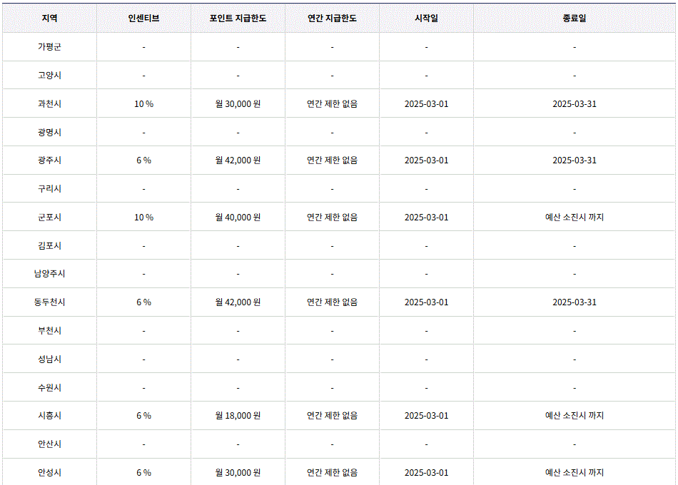 지역별로 경기지역화폐의 예산도 다르고 인센티브 적립율도 다릅니다. 예산이 소진되면 추가적립(인센티브)를 받을 수 없으니 관심있는 지역의 인센티브 현황을 확인해보시고 적립이나 할인을 받으시기 바랍니다.